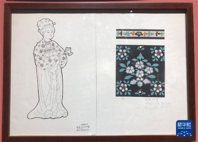 常沙娜从敦煌壁画供养人服饰上选取的花朵纹样(资料照片)。新华社记者张玉洁摄
