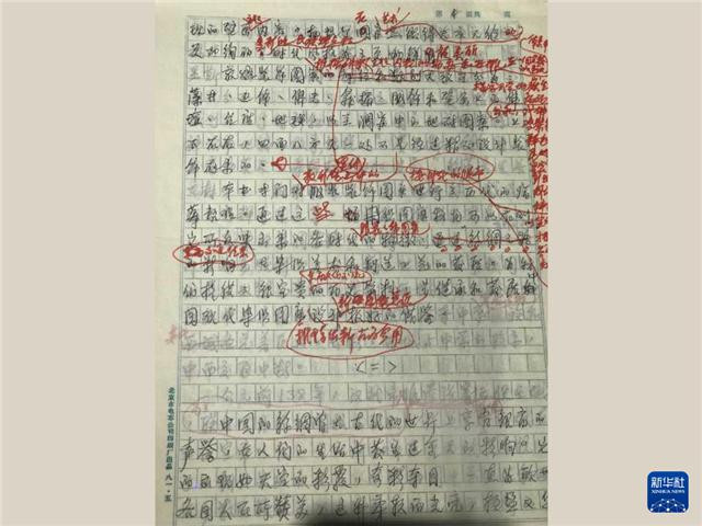 《敦煌历代服饰图案》手稿,红色笔记为常书鸿修改痕迹(资料照片)。新华社记者张玉洁摄